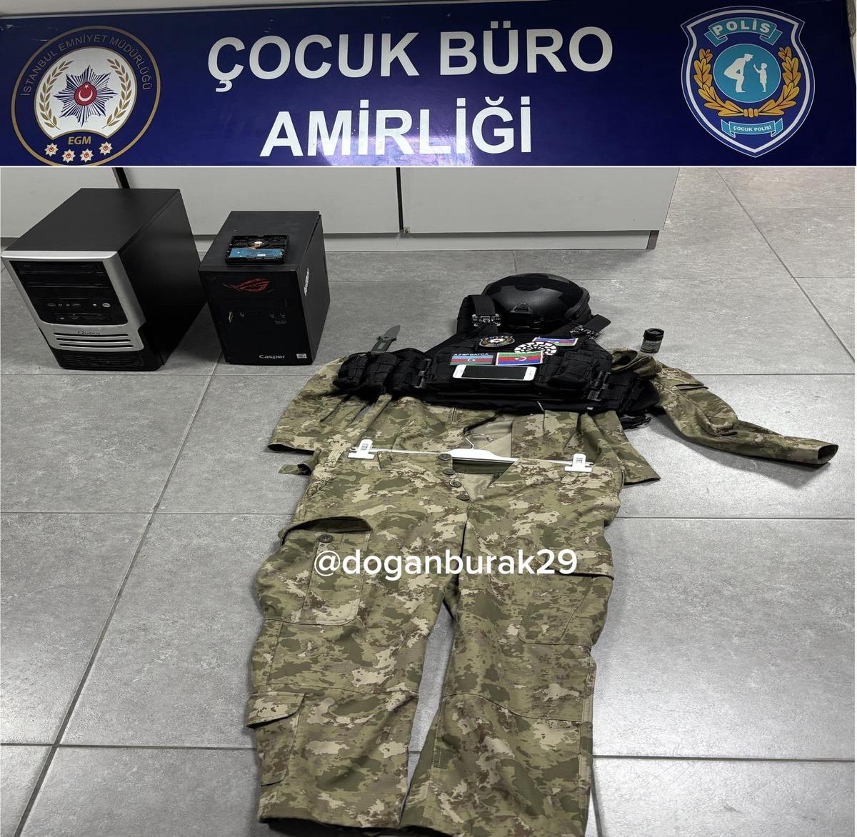 Şahsın evinden kamuflaj ve hücum yeleği çıktı. Ayrıca şahsın mühimmatları arasında biber gazı, kask ve bıçak da tespit edildi.