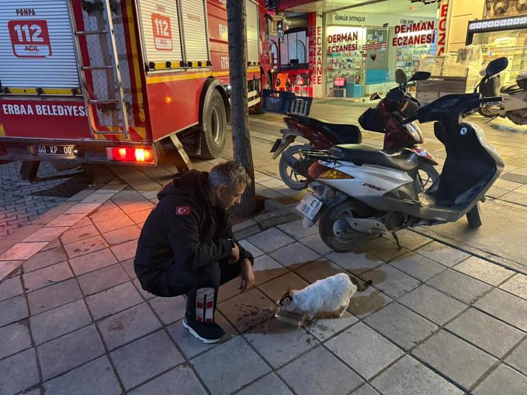 Derede mahsur kalan köpeği itfaiye ekibi kurtardı