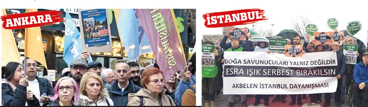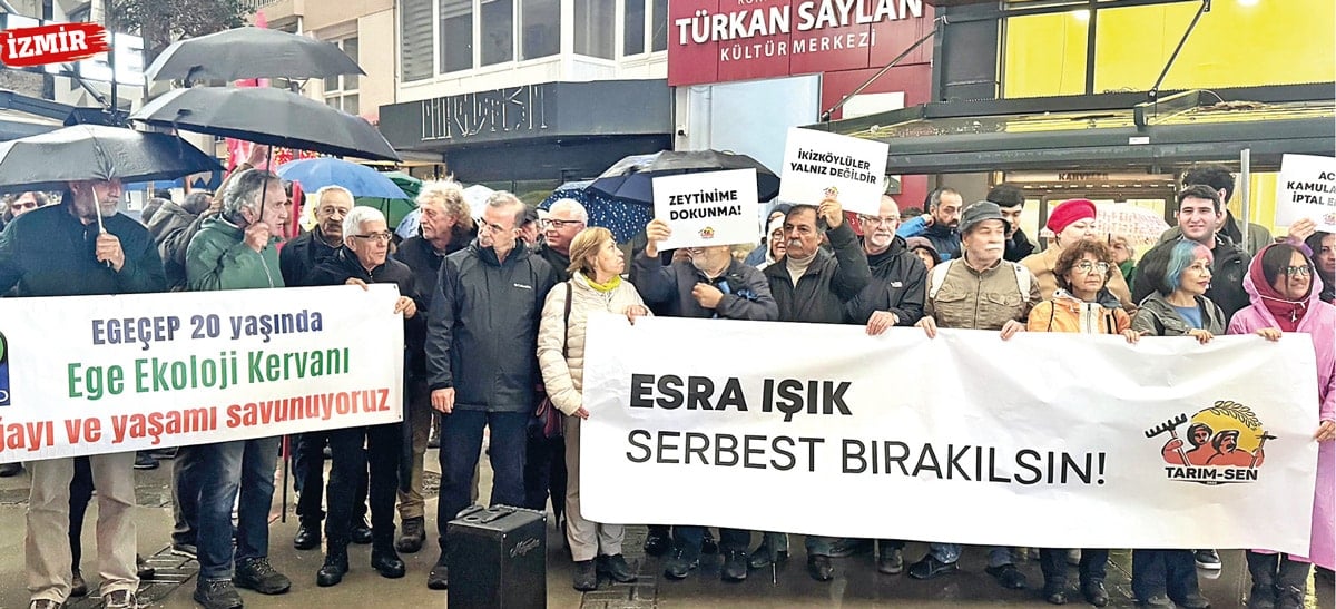 Toprak mücadelesinin simge isimlerinden İkizköy Mahalle Muhtarı Nejla Işık’ın kızı Esra Işık’a destek için Türkiye’nin çok sayıda ilinde protesto eylemi yapıldı. İzmir’deki protesto gösterisinde, “Esra cinayet mi işledi? Soygun mu yaptı? Bir hukuksuzluk mu yaptı? Esra’nın suçu ne?” diye soruldu ve tutuklanmasına tepki gösterildi.