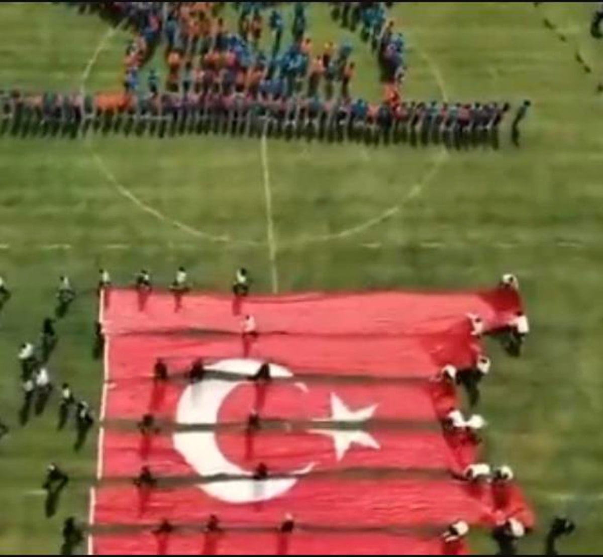 Kocaeli’de 23 Nisan kutlamalarında stadyuma açılan dev Türk Bayrağı’nın üstüne basıldığı görüntüler infiale neden oldu. Yapılan açıklamalar sonrası bayrağın parça parça serildiği ve üzerine basılmadığı ortaya çıktı.