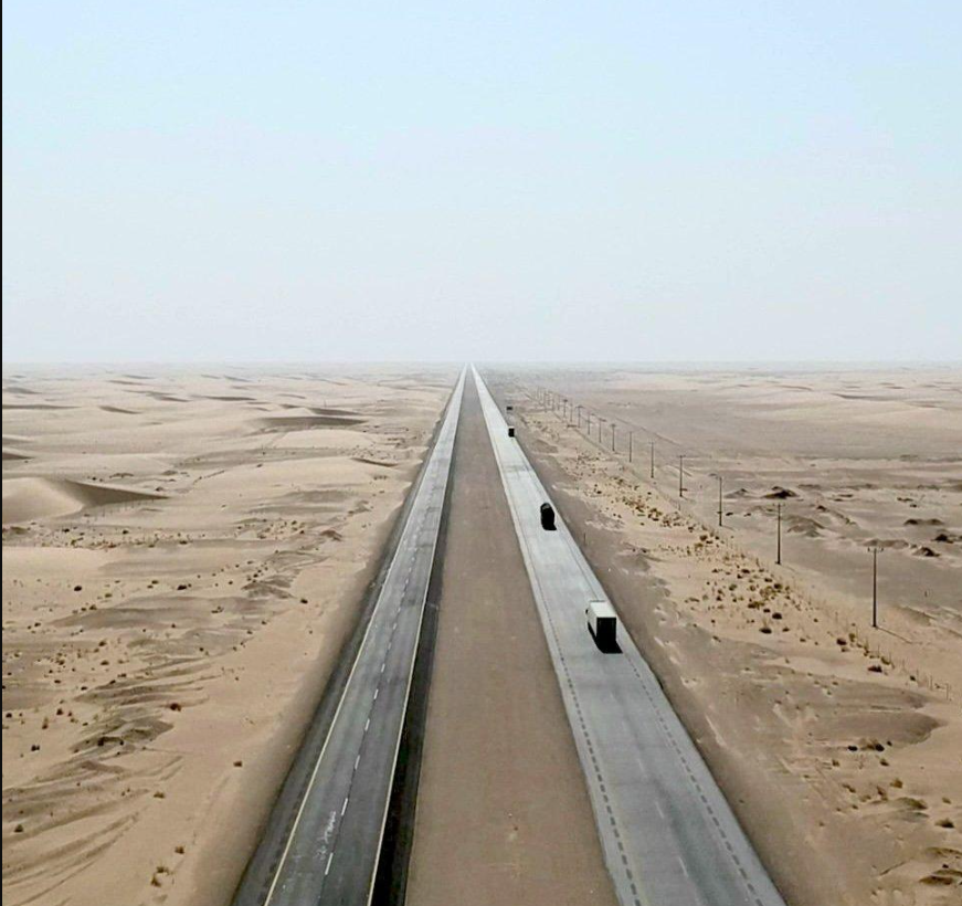 Bu yol, Arap Yarımadası’nın güneyinde yer alan ve “Boş Çeyrek” olarak da bilinen Rub' al Khali çölünün içinden geçiyor. Yaklaşık 650 bin kilometrekarelik alanı kaplayan bu dev çöl, dünyanın en geniş kesintisiz kum çölü olarak biliniyor.