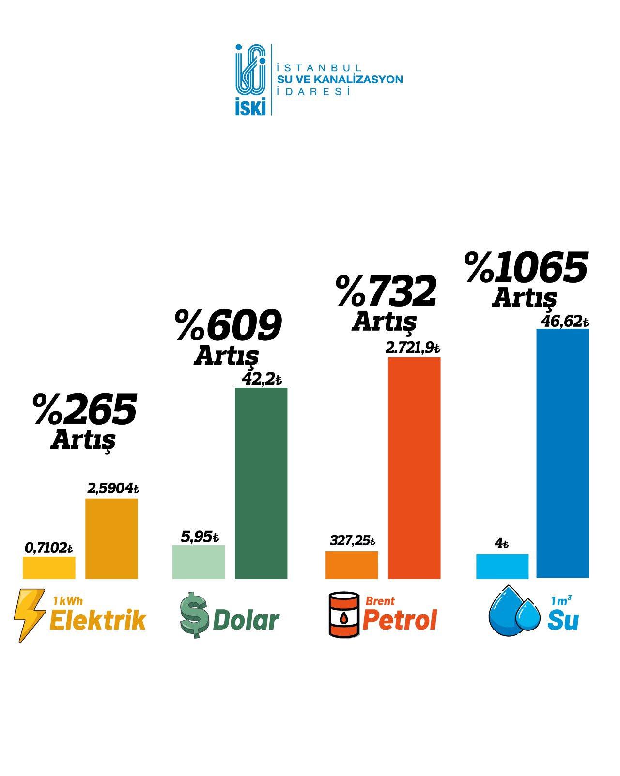 Her zamda ‘elektrik, petrol ve döviz artışı’ bahanelerinin arkasına saklanan İSKİ’nin, bu kalemlerden kat kat daha fazla zam yaptığı rakamlarla gözler önüne serildi.