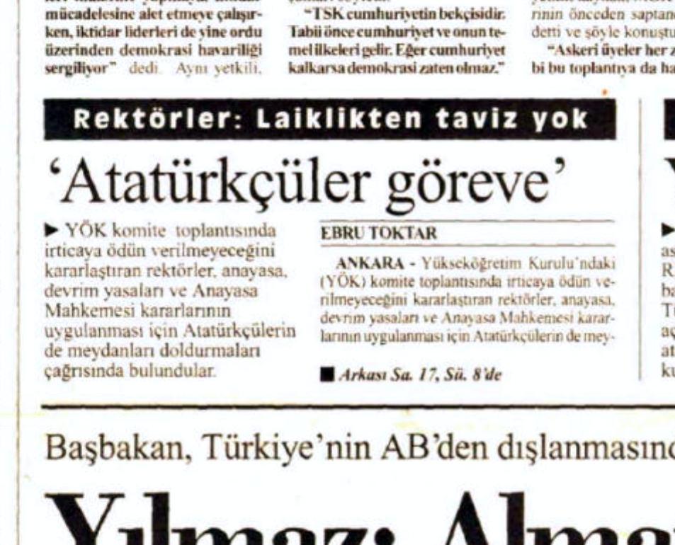 BİLİM DEĞİL MİTİNG YAPAN ÜNİVERSİTELER28 Şubat sürecine Aralık 1996 itibariyle angaje olan üniversiteler, önce “Rektörler Deklarasyonu”, sonrasında da Beşli Çete’den TÜRK-İŞ ile birlikte hükümete uyarı mahiyetinde miting düzenledi.