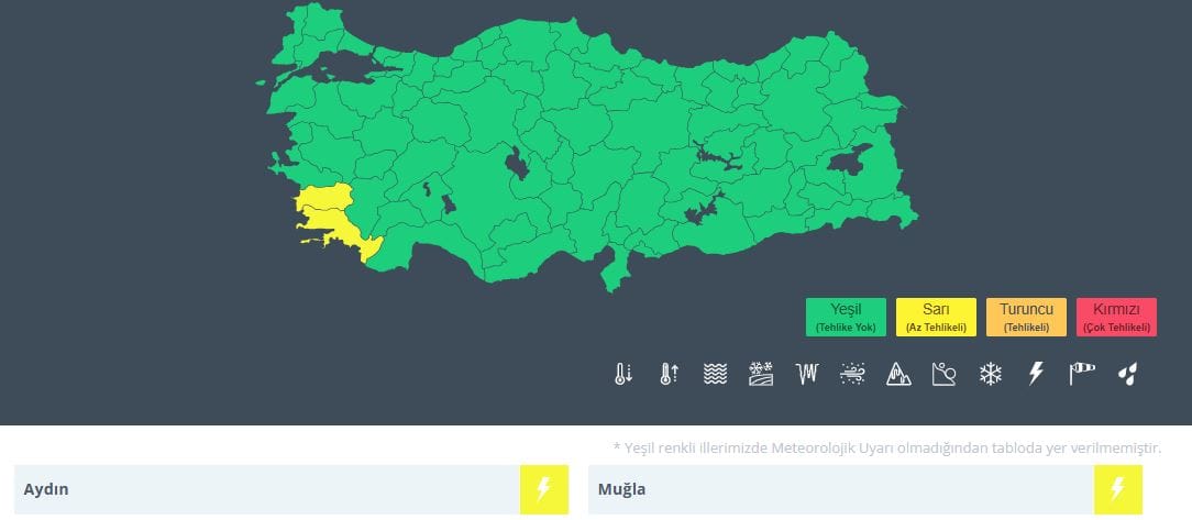 Meteoroloji Genel Müdürülüğü de günlük ve haftalık tahminlerini güncelleyerek rapor paylaşırken 2 il için de sarı kod verdi.
