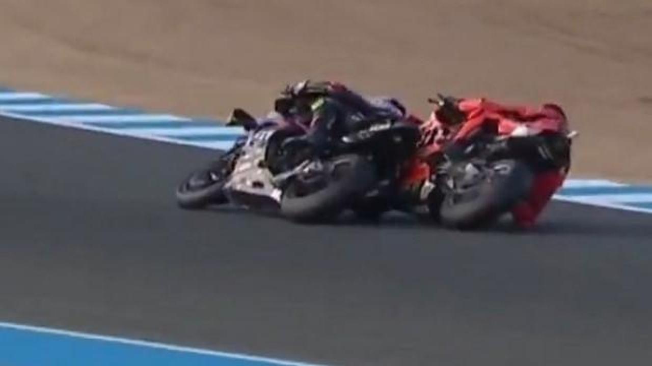 Son dakika haberi: Milli motoskiletçi Toprak Razgatlıoğlu, ikinci rakibi Bulega’nın müdahalesi sonucu kaza yaparak yarış dışı kaldı.