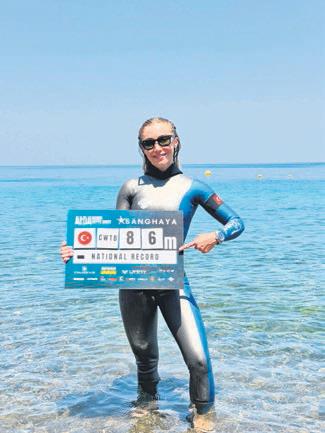 Dünya rekortmeni milli sporcumuz Şahika Ercümen, yine göğsümüzü kabarttı. Filipinler'in Mabini kentinde düzenlenen AIDA Dünya Serbest Dalış Kupası'nda çift palet kategorisinde 86 metreye dalan