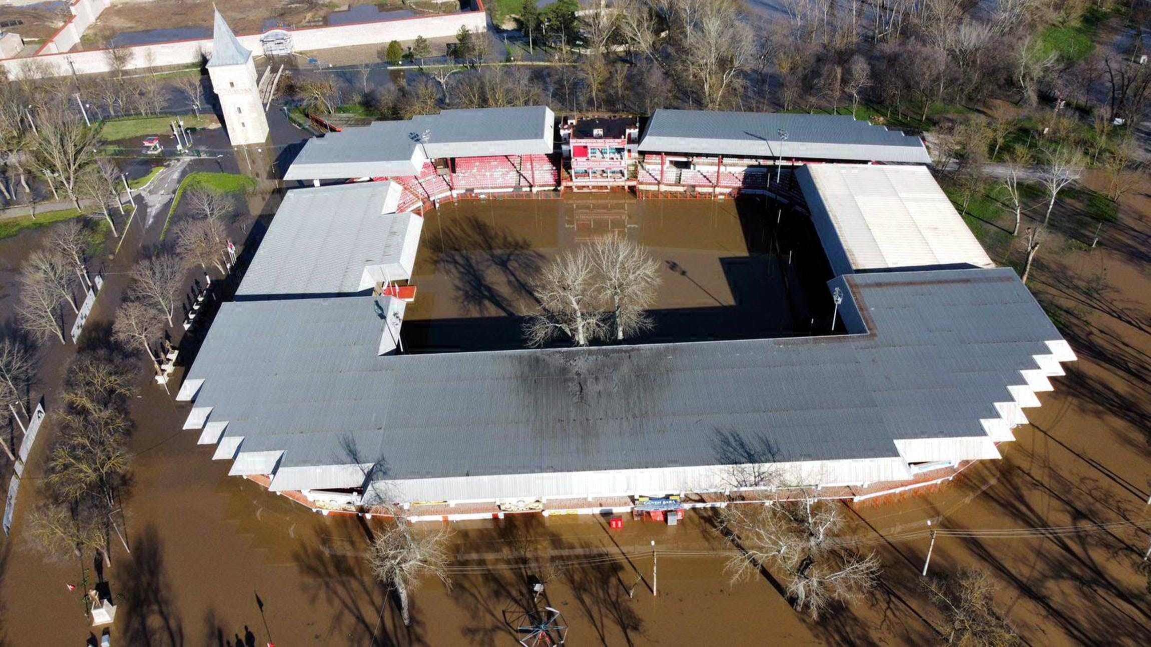 Kırmızı uyarının verildiği Tunca Nehri dün taştı. Taşkın nedeniyle tarihi Kırkpınar Yağlı Güreşleri'nin yapıldığı Sarayiçi, kısmen su altında kaldı. Bu sabah saatlerinden itibaren Sarayiçi'ndeki suyun geniş alana yayıldığı görüldü.