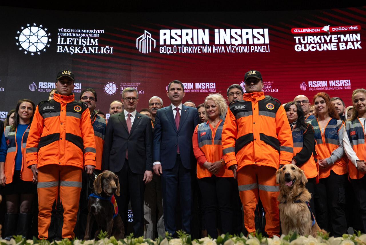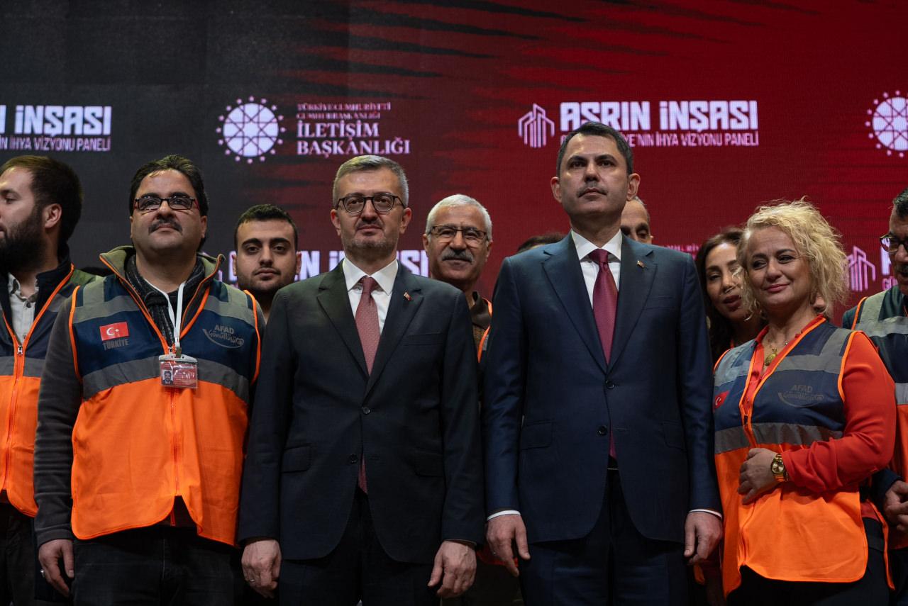 "Bu süreç, Sayın Cumhurbaşkanımızın her fırsatta altını çizdiği gibi hiçbir vatandaşı sahipsiz bırakmama anlayışının ve kimsesizlerin kimsesi olma sorumluluğunun hayata geçirilmesidir. 455 bin konutun vatandaşlarımıza teslim edilmesi bunun en önemli tezahürlerinden birisidir. İnşa ve ihya çalışmalarıyla depremde ağır yara alan tüm şehirlerimiz, bugün yepyeni standartlara, çehrelere kavuşmuştur. Tüm bunlar, fiziksel bir yapılanmayla sınırlı değildir. Sosyal adaletin, ekonomik direncin ve toplumsal iyileşmenin de yeniden tesisini ifade etmektedir. Çevre, Şehircilik ve İklim Değişikliği Bakanımız Sayın Murat Kurum, bölgede yapılan çalışmaları yakinen bilen, bu konuda çok önemli görevler üstlenen birisi olarak size kapsamlı şekilde meseleyi anlatacaktır."