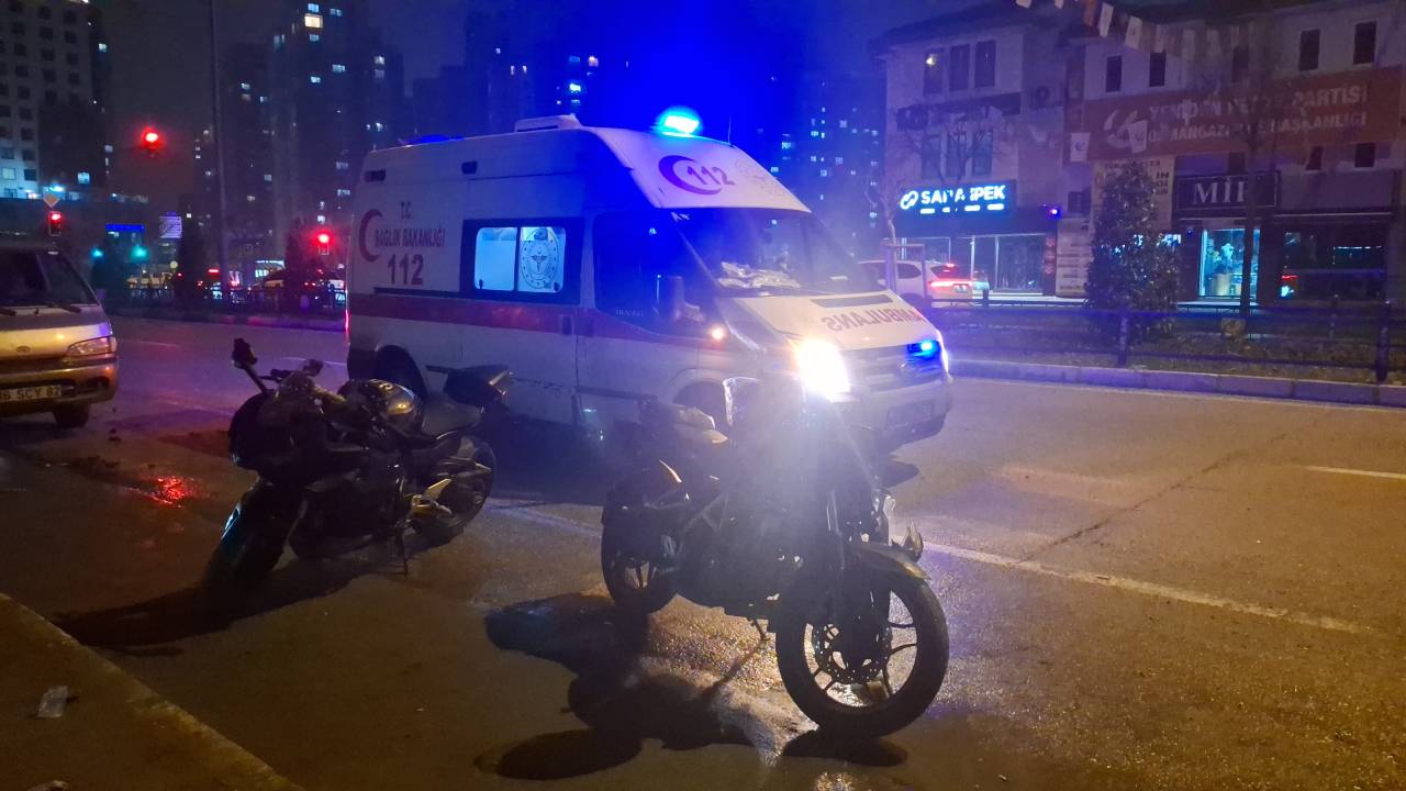 Çarpmanın etkisiyle motosiklet devrilirken, sürücüsü ve yolcu konumundaki arkadaşı yola savruldu.