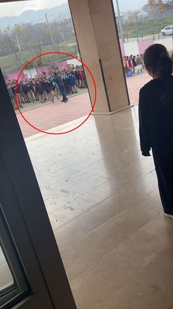 ÖĞRENCİYİ YANINA ÇAĞIRDI Öğrenciler bayrak töreni için sıradayken, okul müdürü Mustafa Ç., Muhammed K. (11) isimli öğrenciyi, iddiaya göre sıra düzenini bozduğu gerekçesiyle yanına çağırdı.