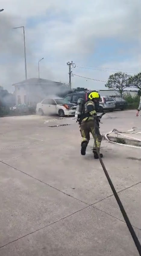Bir süre sonra aracın motor kısmından dumanlar yükselmeye başladı, ardından da alev aldı. Çevredekilerin ihbarı üzerine adrese itfaiye, polis ve sağlık ekipleri sevk edildi.
