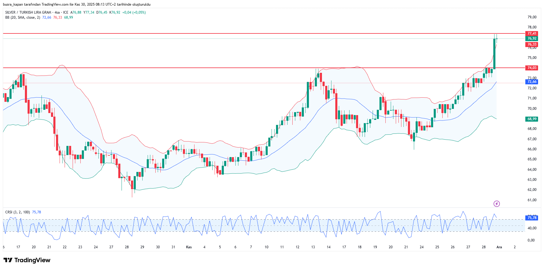 Dolar/TL kurudaki yukarı yönlü seyir ve ons gümüşteki yukarı yönlü hareketlenmelerin etkisiyle, gram gümüş fiyatları rekor üstüne rekor kırdı. Gram gümüş, sabah 09.24'te 76,92 lira seviyesine yükseldi. Gram gümüş ise sene başından bu yana yüzde 137 kazandırdı.