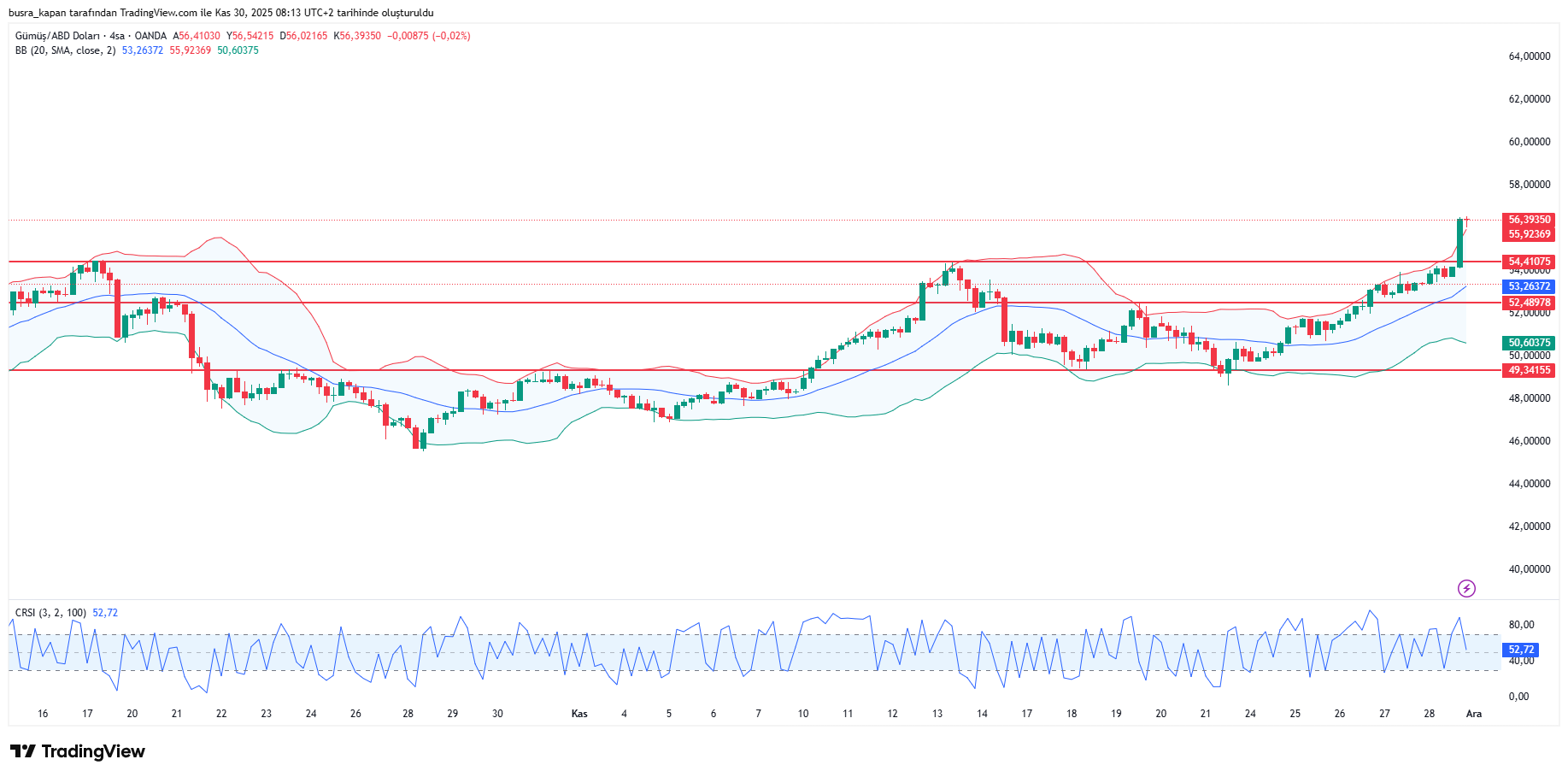 Yaşanan gelişmelerin etkisiyle gümüş fiyatları yeni günde sabah seansında 09.11'de 56,39 dolar seviyesinde bulunuyor.