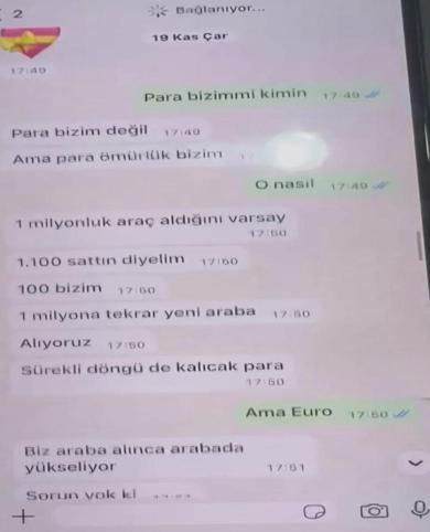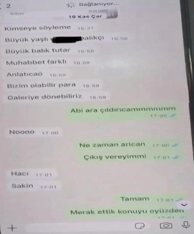 Öte yandan tutuklanan şüphelilerden Ömer Karaca'nın Whatsap'taki mesajları ortaya çıktı. Karaca mesajında, "100 bin euro daha gelebilir, toplamda 200 bin euro, '5 milyon para ile galericilik yapabilir miyiz' yazdığı görüldü.