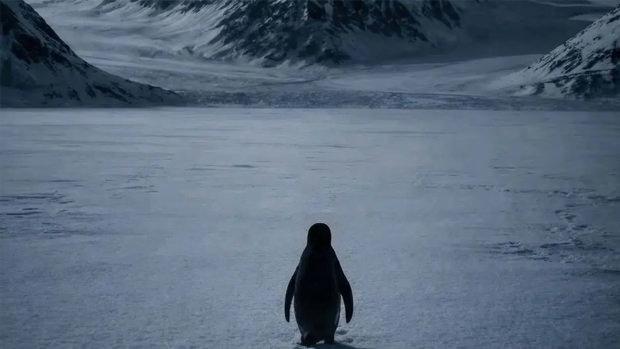 Penguenin tek başına ilerleyişi, "hayatın anlamsızlığında kendi yolunu keşfetme" temasını akıllara getiriyor.