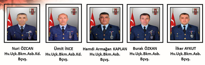 Türk Silahlı Kuvvetlerine ait C130 kargo uçağında şehit olan diğer askerlerimiz ise şöyle: Hava Başçavuş Ramazan Yağız, Hava Uzman Çavuş Cem Dolapçı, Hava Başçavuş Burak Özcan, Hava Kıdemli Başçavuş Ümit İnce.