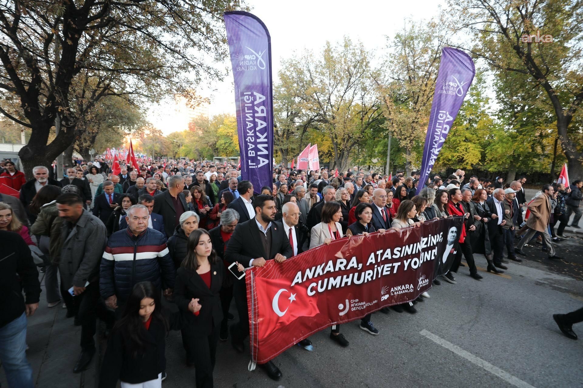 Sabah saatlerinde Ankara'da binlerce kişi, Cumhuriyet Bayramı'nın 102. yılı dolayısıyla Ulus'taki Birinci Meclis önünden Anıtkabir'e yürüdü.