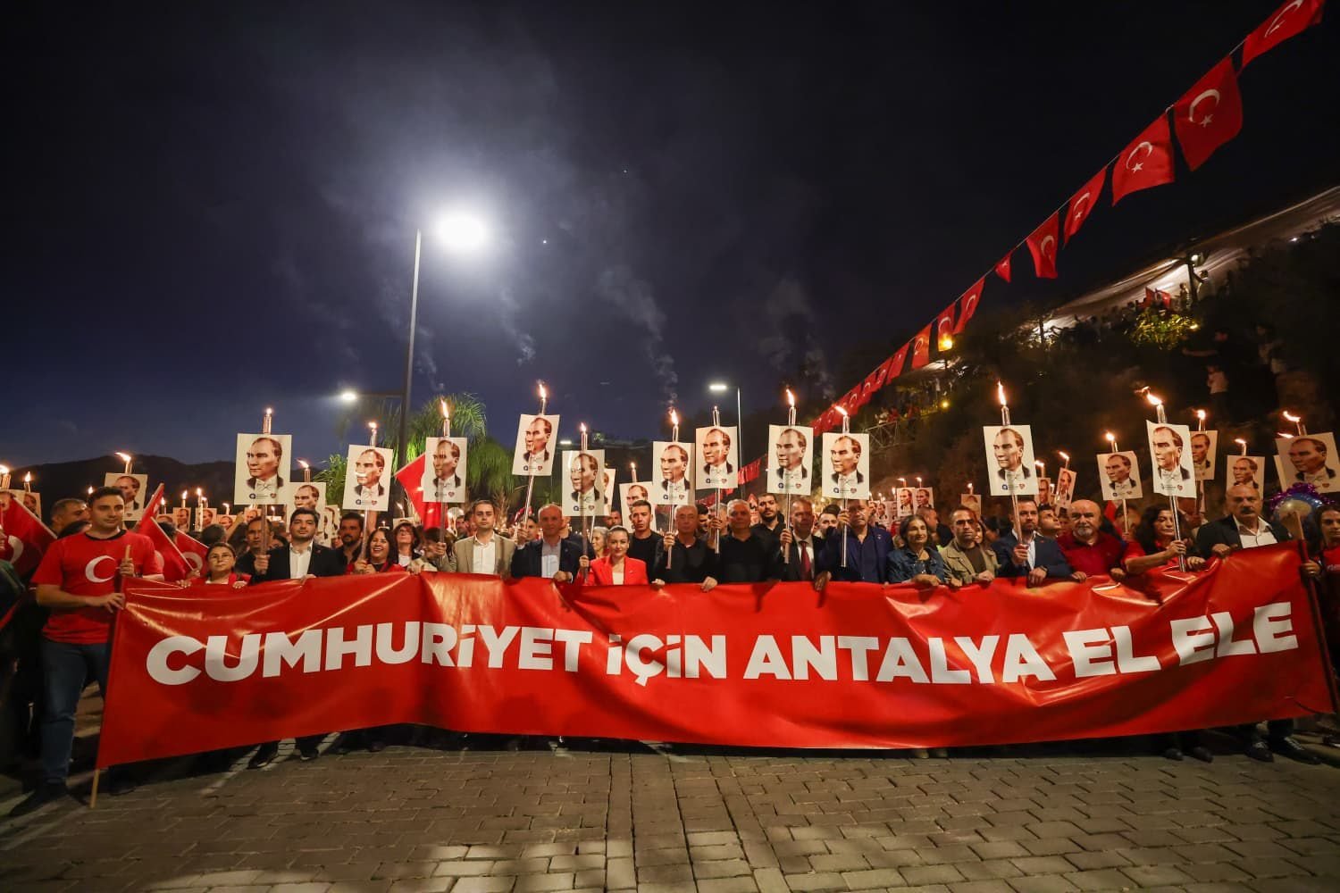 Adana'da on binler "İlelebet Cumhuriyet" pankartı altında fener alayı düzenledi. Antalya'da yurttaşlar akşam saatlerinde fener alayında bir araya geldi.