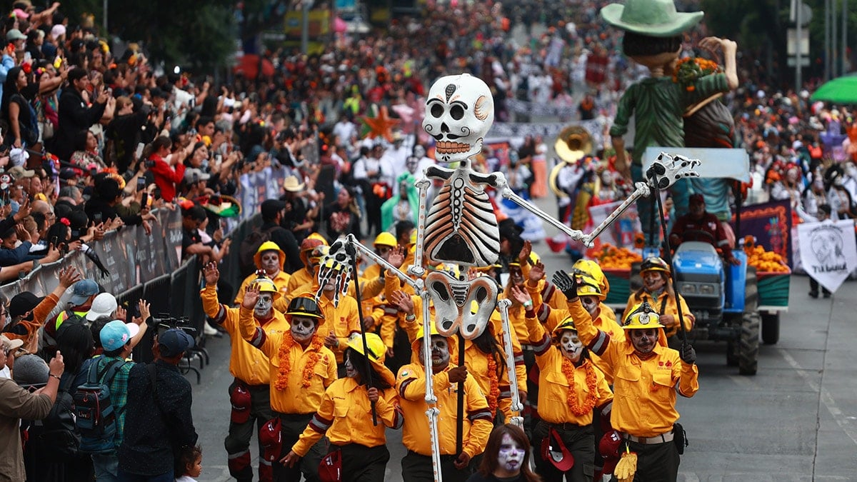 Başkent Meksiko'da gerçekleştirilen geçit töreninde iskelet kostümleri ve çeşitli figürler, katılımcılar tarafından büyük ilgi gördü.