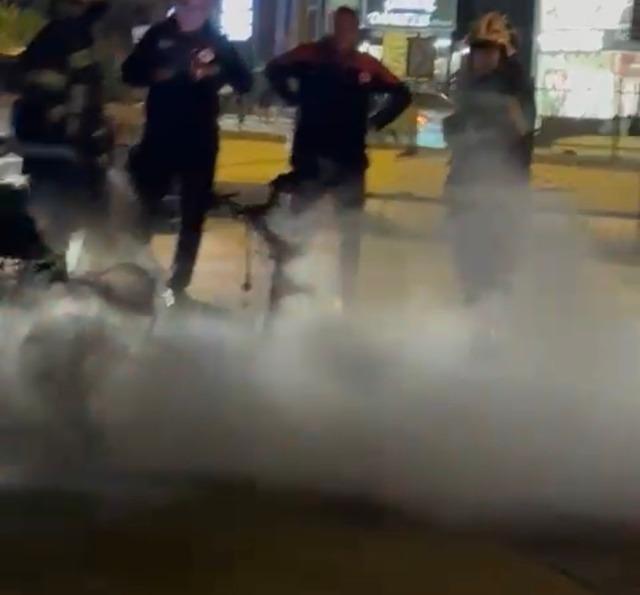 Yanan motosikleti cep telefonuyla görüntüleyen sürücüler, arızadan dolayı çalıştırmadığı motosikletini ateşe veren sürücüye, "Sen ne yaptın be dayı" diyerek seslendi. Yangınla ilgili soruşturma başlatıldı.