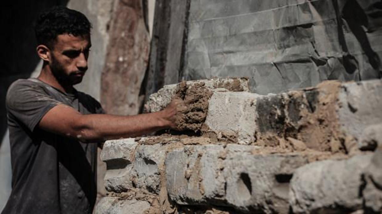 FİLİSTİNLİ GENÇ, ÇAMUR VE ENKAZDAN TOPLADIKLARI TUĞLALARLA EVİNİ YENİDEN İNŞA ETMEYE ÇALIŞIYORGazze Şeridi’nin orta kesimindeki Bureyc Mülteci Kampı’ndan 22 yaşındaki Hasan Cihad Halife, ateşkes anlaşmasının ardından İsrail saldırısında yıkılan evine geri döndü. Saldırılarda ailesini de kaybeden Halife, yıkılan evinin kalıntılarından çamur ve taşlarla küçük bir barınak inşa ederek tek başına hayatını yeniden kurmaya çalışıyor.