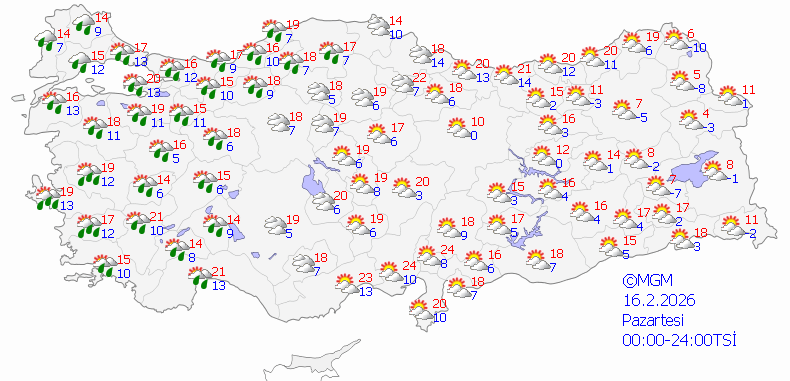 MGM'nin internet sitesinde yer verilen 5 günlük hava tahmin raporuna göre 18 Şubat çarşamba günü için 81 ilin tamamında yağmur beklentisine yer verilirken, 19 Şubat perşembe ise 14 ilde hafif kar yağışı görülebileceği uyarısında bulunuldu.