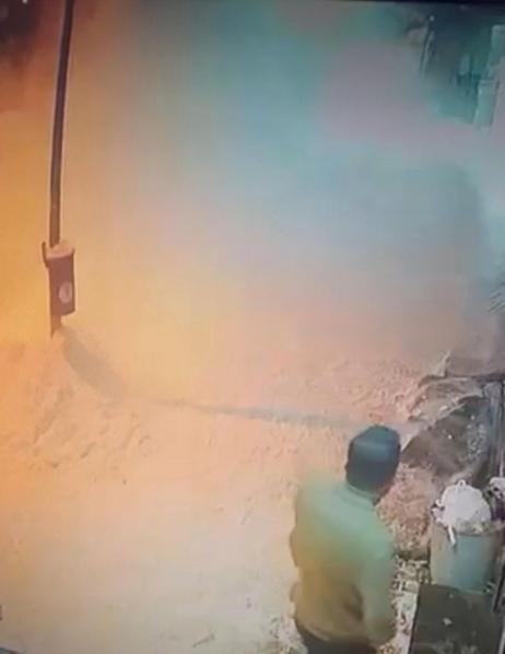 İş yeri önünde bekleyen bir kişinin çatıdan düşen kar kütlesini izlemesi güvenlik kamerasına yansıdı.