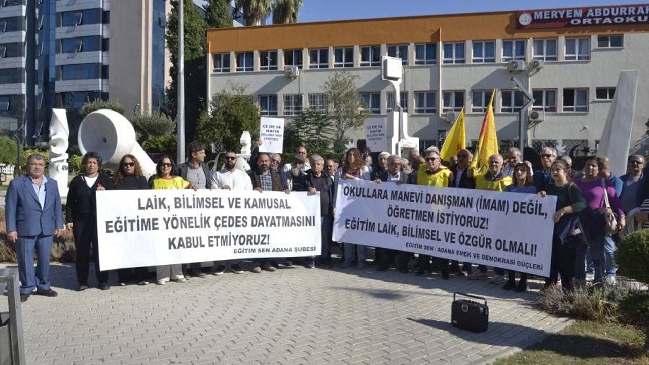 Adana Demokrasi Platformu ve Eğitim Sen Adana Şubesi, Milli Eğitim Bakanı Yusuf Tekin tarafından hayata geçirilen 'Çevreme Duyarlıyım, Değerlerime Sahip Çıkıyorum' (ÇEDES) projesi kapsamınsa okullara imam atanmasını protesto etti.