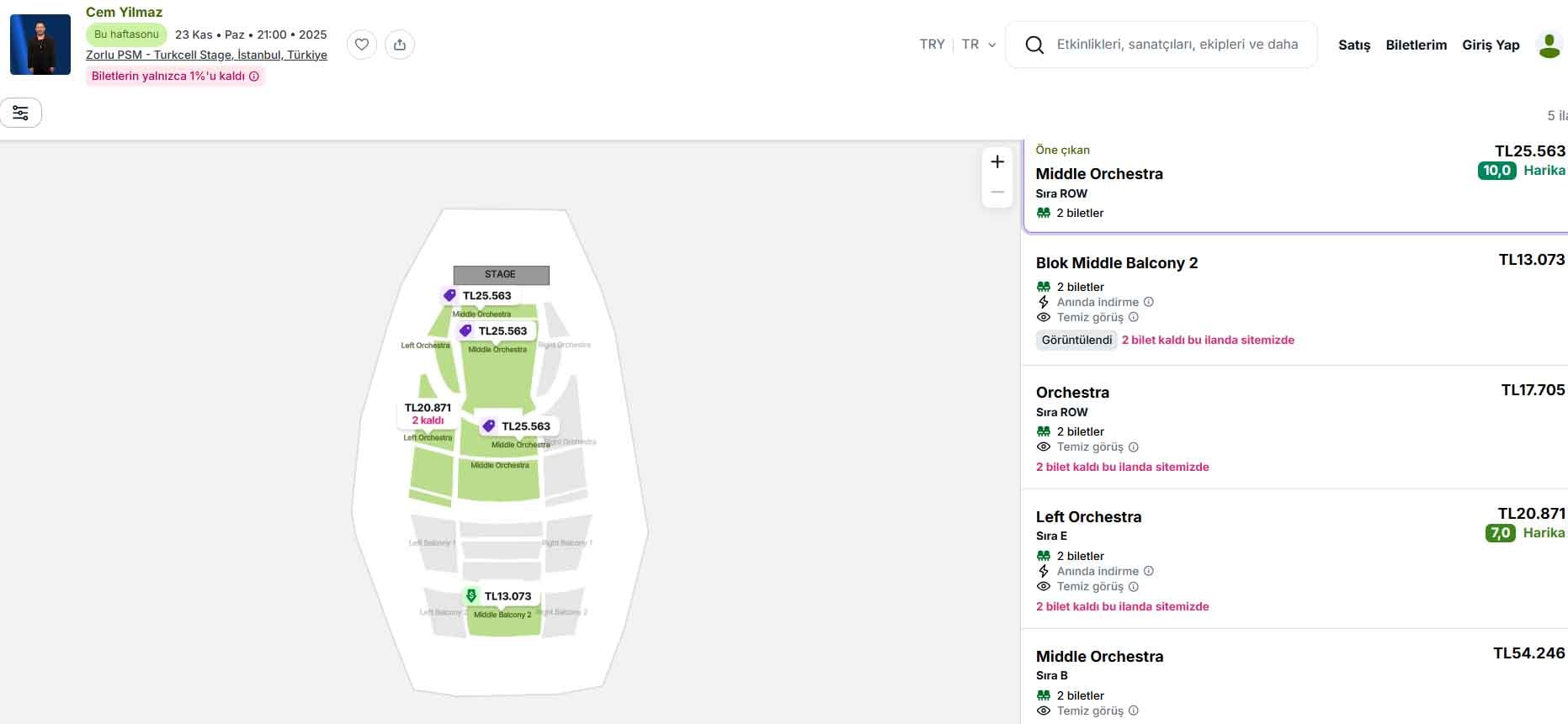850 ile 5 bin 500 lira arasında satışa sunulan gösterinin 23 Kasım'daki biletleri tükenirken, biletler karaborsada 54 bin liraya kadar çıktı.