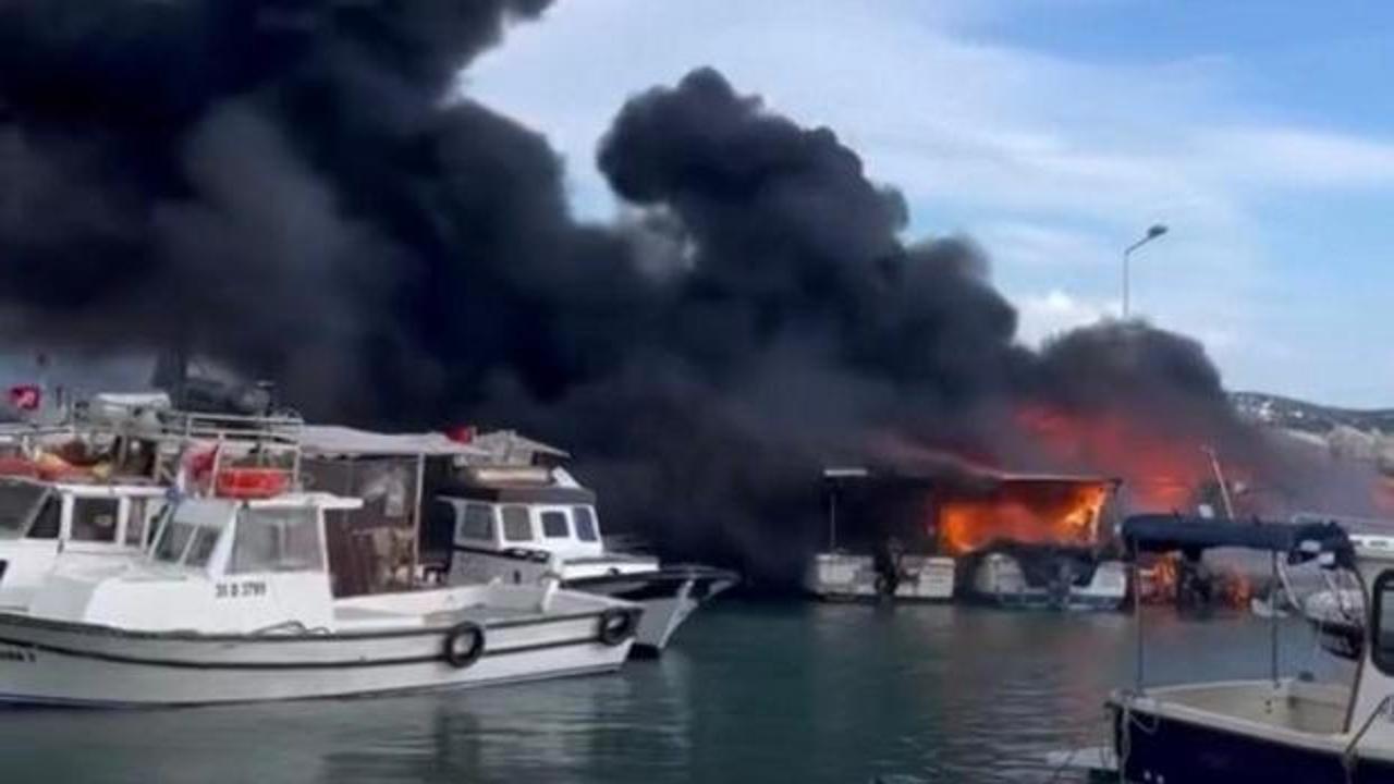 Çeşme'de korku dolu anlar: Tekneler alevlere teslim oldu