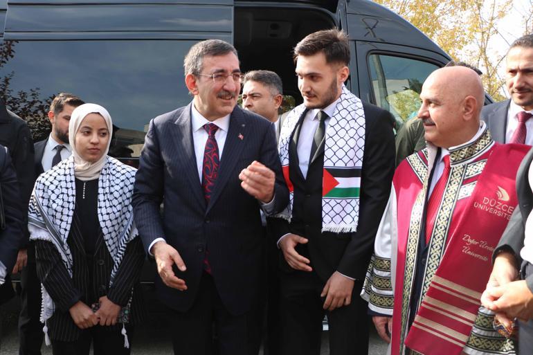 Düzce Üniversitesi Akademik Yıl açılış törenine katılmak üzere kente gelen Cumhurbaşkanı Yardımcısı Cevdet Yılmaz, ilk olarak Düzce Valiliği’ni ziyaret etti. Yılmaz, Düzce Valisi Selçuk Aslan ve protokol üyeleri tarafından karşılandı. Valilik ziyaretinin ardından AK Parti İl Başkanlığı'nı ziyaret eden Yılmaz, partililerle bir araya geldi. Sonrasında Düzce Üniversitesi Akademik Yılı açılış törenine katılan Cevdet Yılmaz’a fahri doktora ünvanı verildi.