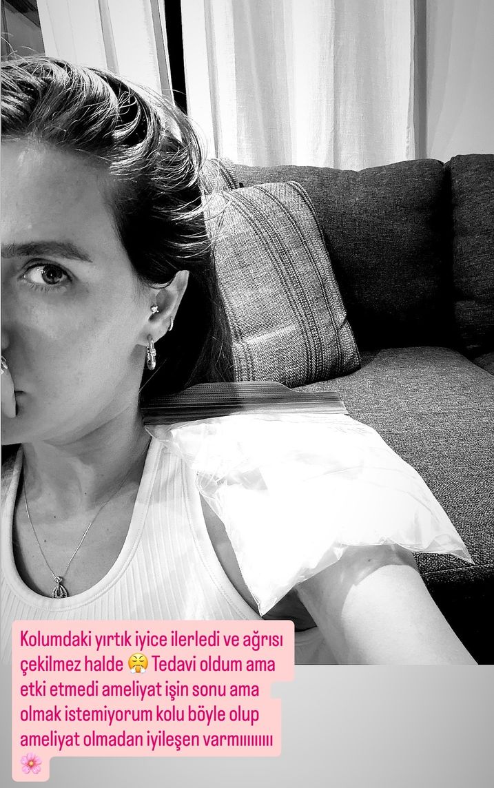 Oyuncu, ardından takipçilerine; "Kolu böyle olup ameliyat olmadan iyileşen var mı?" sorusunu yöneltip konuyla ilgili yardım istedi.