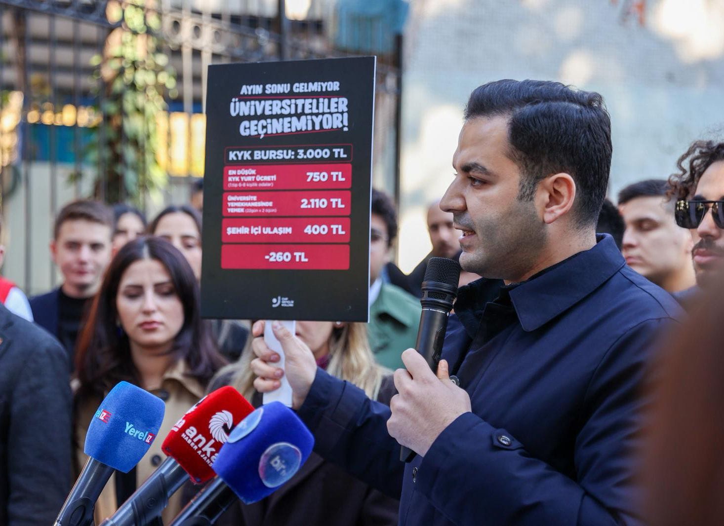 "Devletin verdiği 3 bin TL KYK bursu, üniversite öğrencisinin ay sonunu getirmesine yetmiyor. Çünkü 3 bin TL demek günlük 100 TL demek. Rakamlar ortada tablo açık. Günlük 100 TL demek öğrencilere bir çorba parasını bile çok görmek demek.