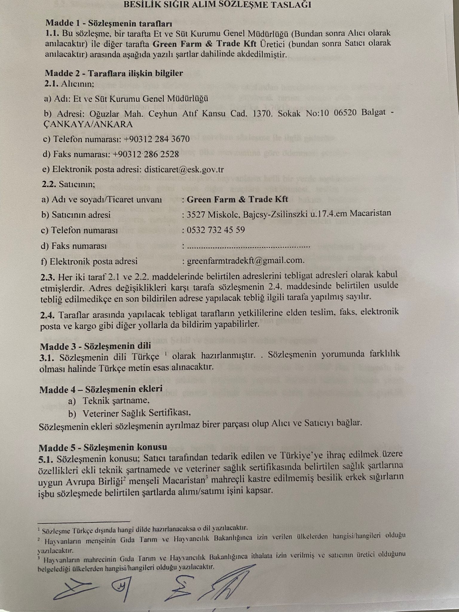 Açıklamalara göre sözleşme, Et ve Süt Kurumu ile Taylan’ın ortağı olduğu Macaristan merkezli Green Farm & Trade Kft arasında yapıldı. Belgede 2.000 adet besilik sığır ithalatına ilişkin tüm ticari şartların yer aldığı ve satıcı tarafında bizzat Taylan’ın imzasının bulunduğu ifade edildi. Adem, “Bu bir niyet belgesi değil, tam teşekküllü bir ithalat sözleşmesidir” değerlendirmesinde bulundu.
