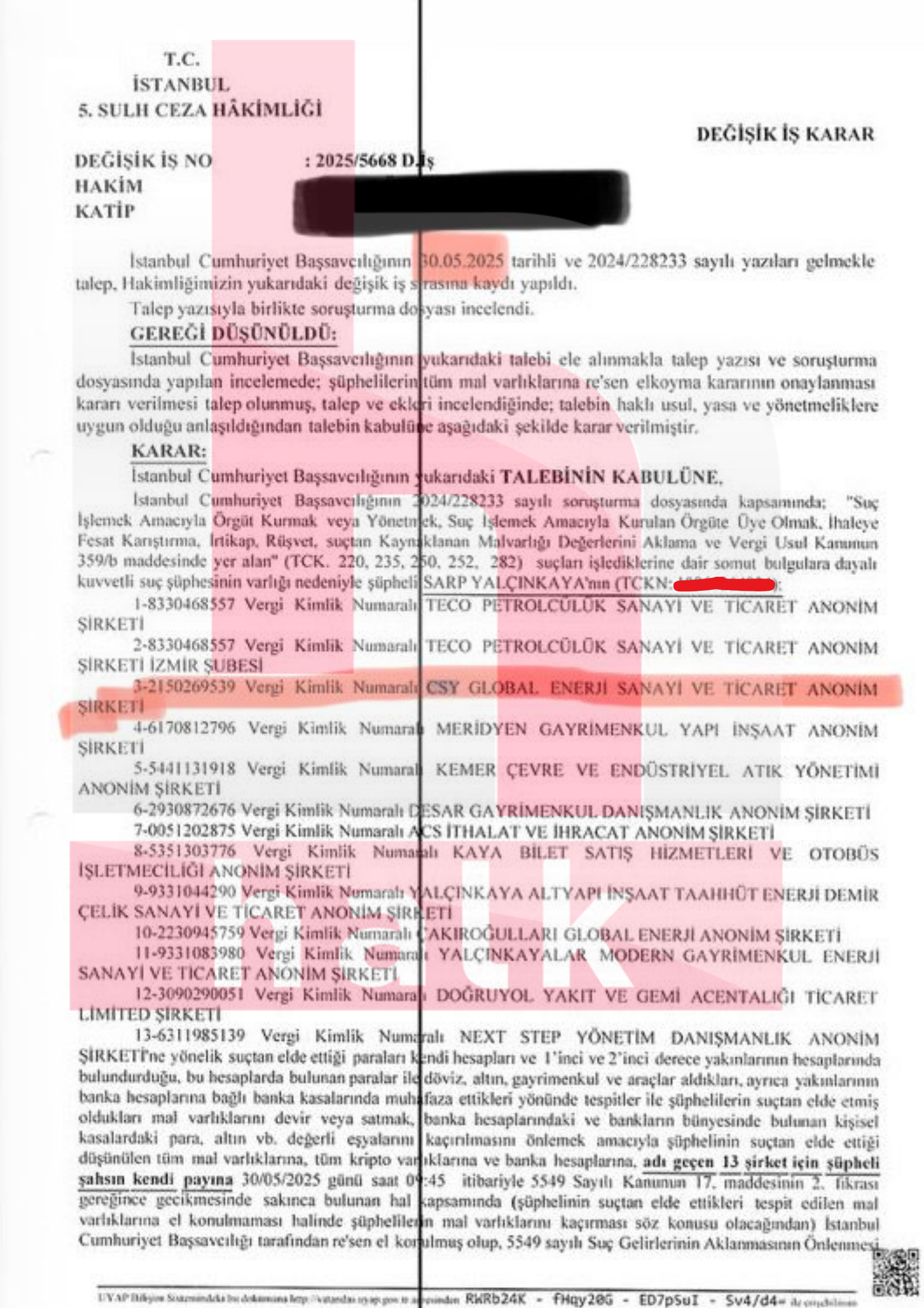 "26 Mayıs günü tutuklanan iş adamı Sarp Yalçınkaya 29 Mayıs günü 8 milyon doları bir kuyumculuk firmasına gönderiyor. Kuyumculuk üzerinden almaları daha kolay diye böyle yapmışlar. Çünkü İBB dosyasındaki tüm avukatlık ücretlerini toplasanız 8 milyon dolar olmaz. Bu ücreti açıklayamazlar. Ardından TMSF 30 Mayıs'ta mal varlığına el koyuyor. O kadar açık ki bir anlaşma var, süre tanıma var. "