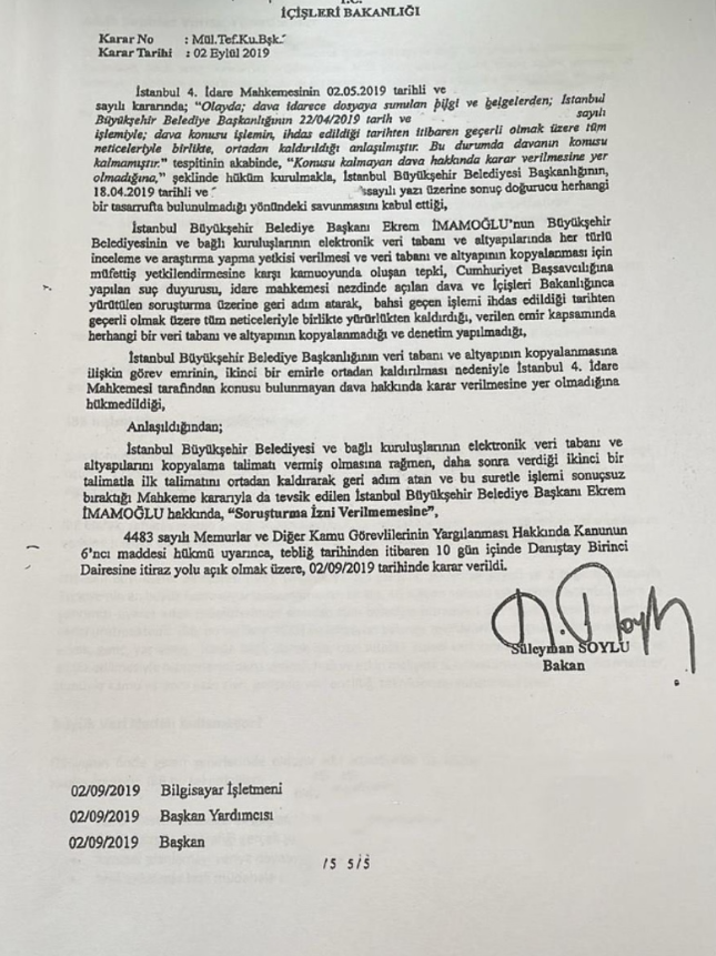 "VERİ KOPYALAMA İDDİASI RESMEN ÇÜRÜTÜLMÜŞTÜR"Özgür Karabat, iddianamede yer alan "İBB verilerinin yedeklenmesi ve kopyalanması" suçlamasına karşı, 2 Eylül 2019 tarihli ve eski İçişleri Bakanı Süleyman Soylu imzalı resmi belgeyi kanıt gösterdi. Karabat, söz konusu belgede İmamoğlu'nun veri yedekleme talimatı üzerine Bakanlık tarafından yapılan inceleme sonucunda verilerin kopyalanmadığının resmen kayda geçirildiğini belirtti. "Sözde casusluk iddianamesi tel tel dökülüyor" diyen Karabat, suçlamaların devletin kendi resmi belgeleriyle daha önce çürütüldüğünü ve iddianamenin hukuki dayanağının bulunmadığını savundu.