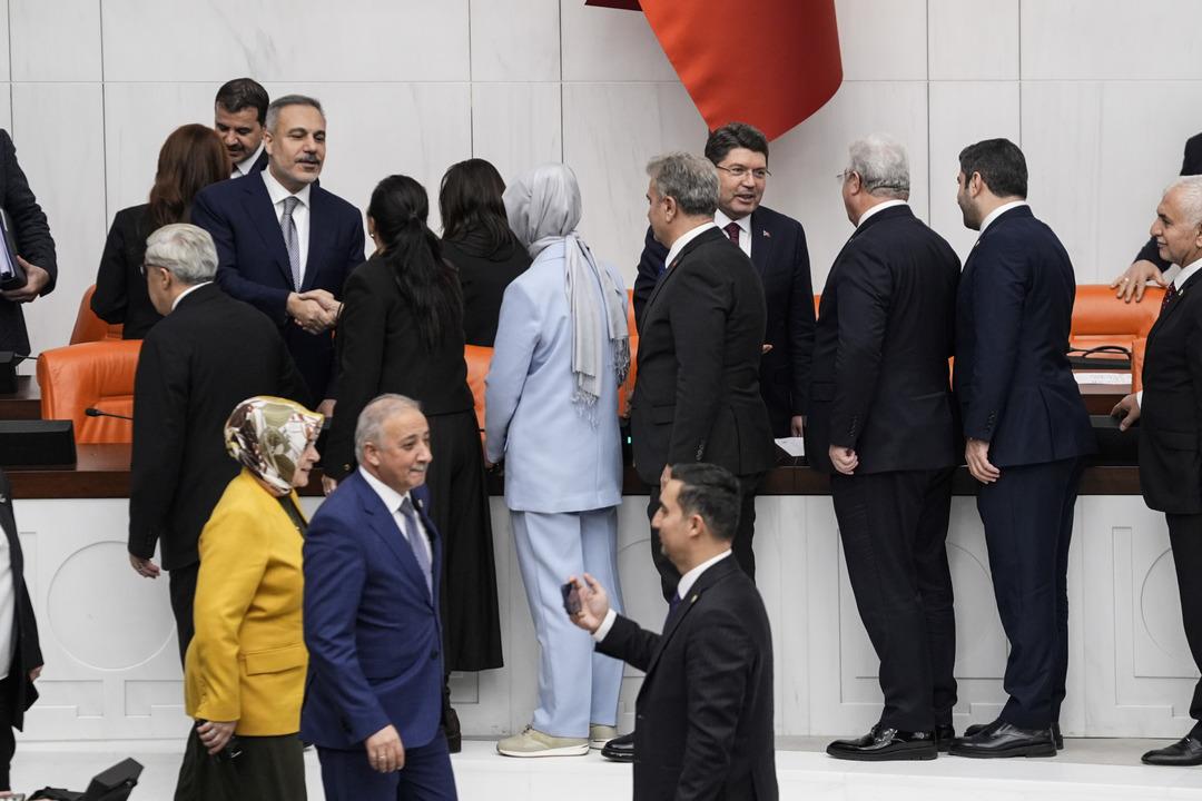 Bakan Tunç ve Bakan Fidan’ı kutlamak isteyen AK Partili vekiller, Meclis kürsüsü önünde uzun bir kuyruk oluşturdu.