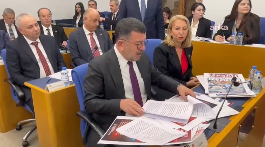 "Yüzlerce insan 10 aydır bir paçavradan dolayı cezaevinde tutulmaya devam ediyor. Kendimi ihbar ediyorum. Ben de 1993’ten beri bu örgütün üyesiyim. Bu arkadaşlar da örgütün milletvekili, onları da ihbar ediyorum. Maalesef CHP’yi kapatmaya yönelik bir iddianameyle karşı karşıyayız. Sabah gazetesinde iddianameden önce algı operasyonu yaptılar, ‘EKO SİSTEM, 560 milyar para var’ dediler, iddianamede yok. Yenişafak’ta ‘PKK 100 milyon rüşvet’ dediler, bu da yok iddianamede."
