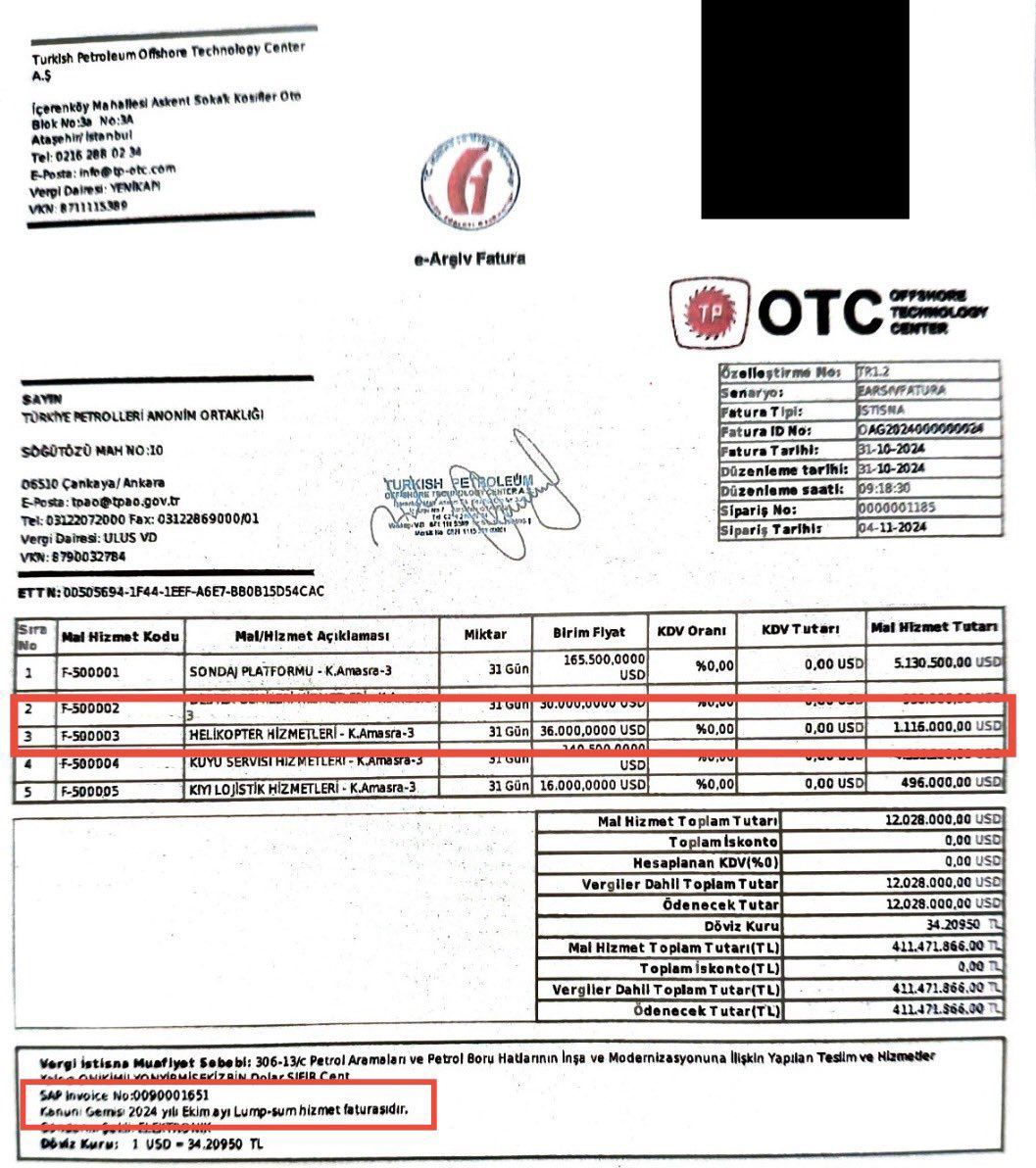"AKP'nin belgeli helikopter vurgunu 2" başlığıyla yaptığı paylaşımda Yavuzyılmaz, Türkiye Petrolleri Anonim Ortaklığı‘nın alt şirketi olan Türkiye Petrolleri Offshore A.Ş.’nin Fatih, Yavuz, Kanuni ve Abdülhamid Han sondaj gemilerine alınan ‘helikopter hizmetleri’ için, Katar ortaklı bir şirkete yıllık 2 milyar lira tutarında ödeme yaptığını belirtti.