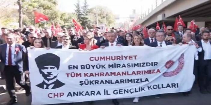 CHP Ankara İl Başkanlığı, 29 Ekim Cumhuriyet Bayramı dolayısıyla Ulus Atatürk Heykeli'nde çelenk töreninin ardından Birinci Meclis önünden Anıtkabir'e yürüyüş düzenledi.