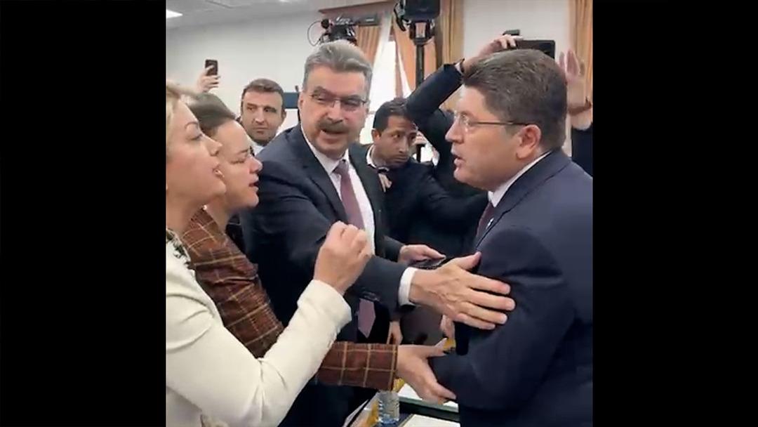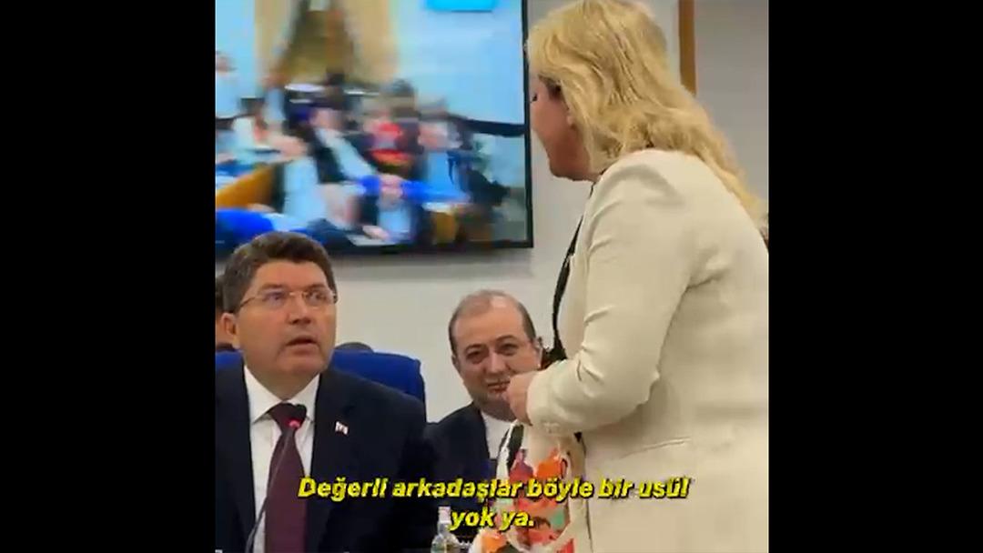 Komisyonun toplantı kurallarını ihlal ederek Bakan Tunç’un masasına kadar gelen Kaya burada tepkisini sürdürdü.