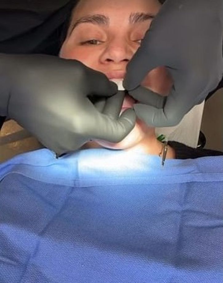 Üzerinde kaplama olan doğal dişinin kalıntısını çekinmeden gösteren Chrissy Teigen, sonunda bir diş hekimi koltuğunda düşen kaplamasını yerine taktırma anını da paylaştı.