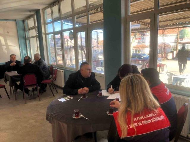 Akpınar köyündeki çiftçiyle bir araya gelen Vize İlçe Tarım ve Orman Müdürlüğü teknik görevlileri, tarımsal üretim planlaması, genel tarım sayımı, aşılama çalışmaları, sulama yöntemleri ve desteklemelerle ilgili bilgilendirmeler yaparak, üreticilerin sorularını da cevapladı.