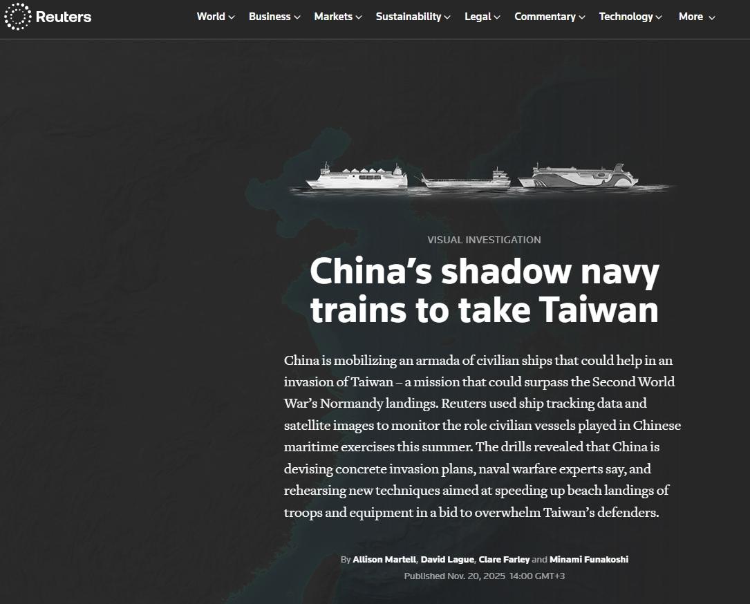 Tayvan, son dönemde Çin'in olası bir işgaline karşı başlattığı tatbikatlarla hazırlıklarını sürdürürken Reuters, dünya gündemine bomba gibi düşen bir analize imza attı. Reuters, 20 Kasım'da hazırladığı bir analizle Çin, Tayvan’a yönelik olası bir amfibi harekâtı için harekete geçtiğini ve bu kapsamda sivil feribotlar ve güverteli kargo gemilerini askeri kullanıma uygun hale getirmek için çalışmalara başladığını duyurdu.