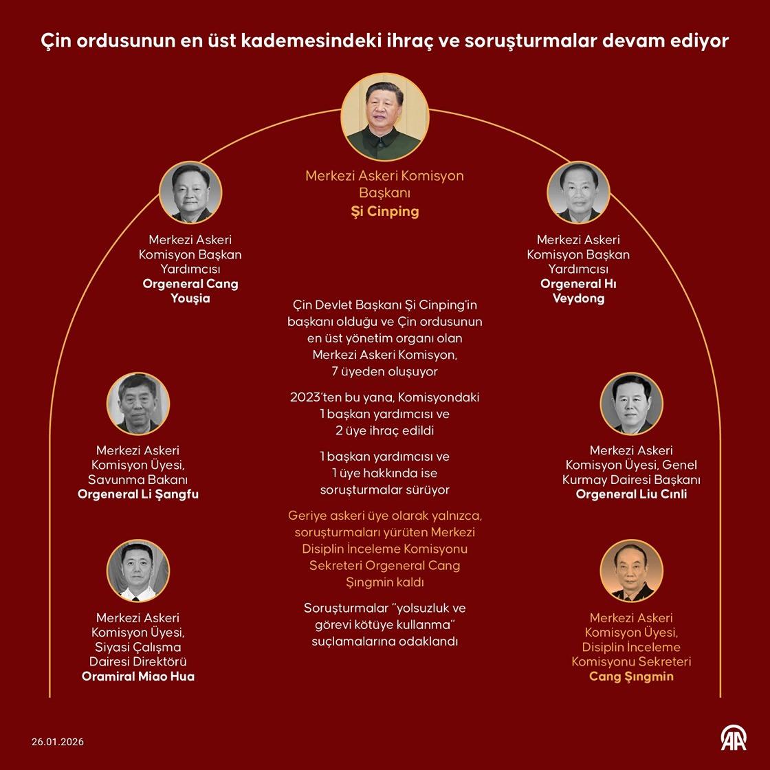 Çin Havacılık Sanayi Şirketinin (AVIC) Yönetim Kurulu Başkanı Cou Şinmin ise savaş uçakları ve dronlar gibi askeri hava araçları ve donanımlarının geliştirilmesinde sorumlu kurumun başına 2024 yılında geçmiş, yaklaşık 1 yıl sonra görevden alınmıştı.