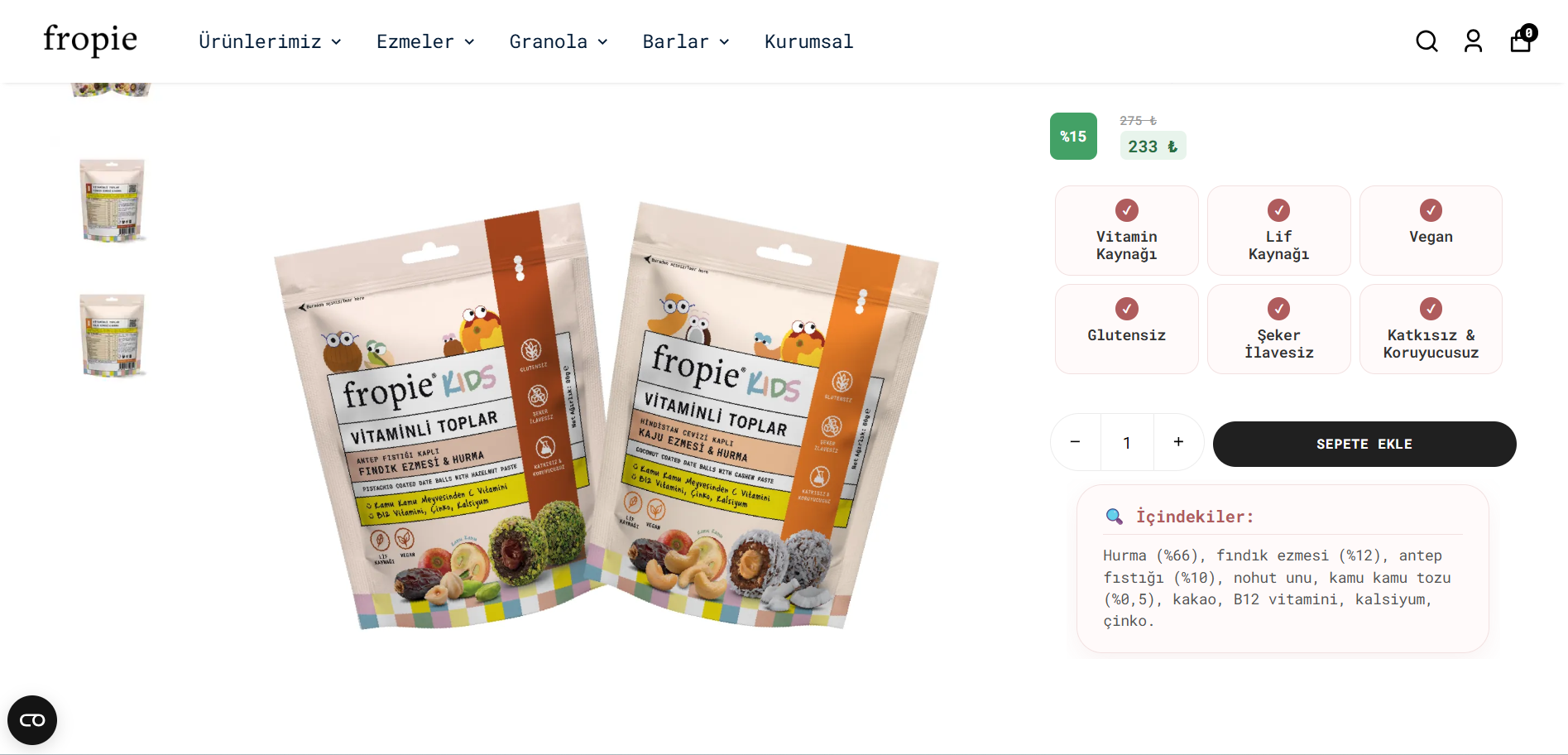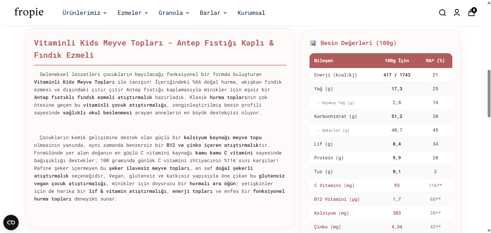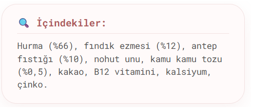 Pazarlama metinlerinde ise atıştırmalık toplarda Antep fıstığı bulunmasına vurgu yapılıyor.