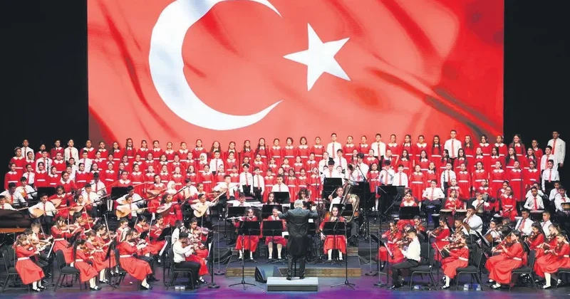 Cumhurbaşkanlığı himayesinde kurulan Cumhurbaşkanlığı Çocuk Orkestrası ve Korosu, Cumhurbaşkanlığı Külliyesi'nde bugün 23 Nisan Ulusal Egemenlik ve Çocuk Bayramı kapsamında bugün konser verecek. Konserle, izleyicilere kültürel açıdan zengin bir deneyim sunulacak. 2024'te başlatılan proje kapsamında yapılan yetenek sınavlarıyla yaklaşık 1000 çocuk arasından seçilen öğrencilerle kurulan orkestra ve koro, bugün 300'ü aşkın öğrenciye ulaştı. Türk müziği ve Batı müziği enstrümanlarının bir arada yer aldığı koro, çocuklara çok yönlü sanat eğitimi imkânı sunuyor. Cumhurbaşkanlığı Çocuk Orkestrası ve Korosu, müzik topluluğu olmanın yanı sıra çocukların birlikte üretme, disiplinli çalışma ve kültürel değerlerle bağ kurmaya da katkı sağlıyor. Projede, Türk müziği eserlerine özel bir yer verilerek kültürel mirasın yeni nesillere aktarılması hedefleniyor.