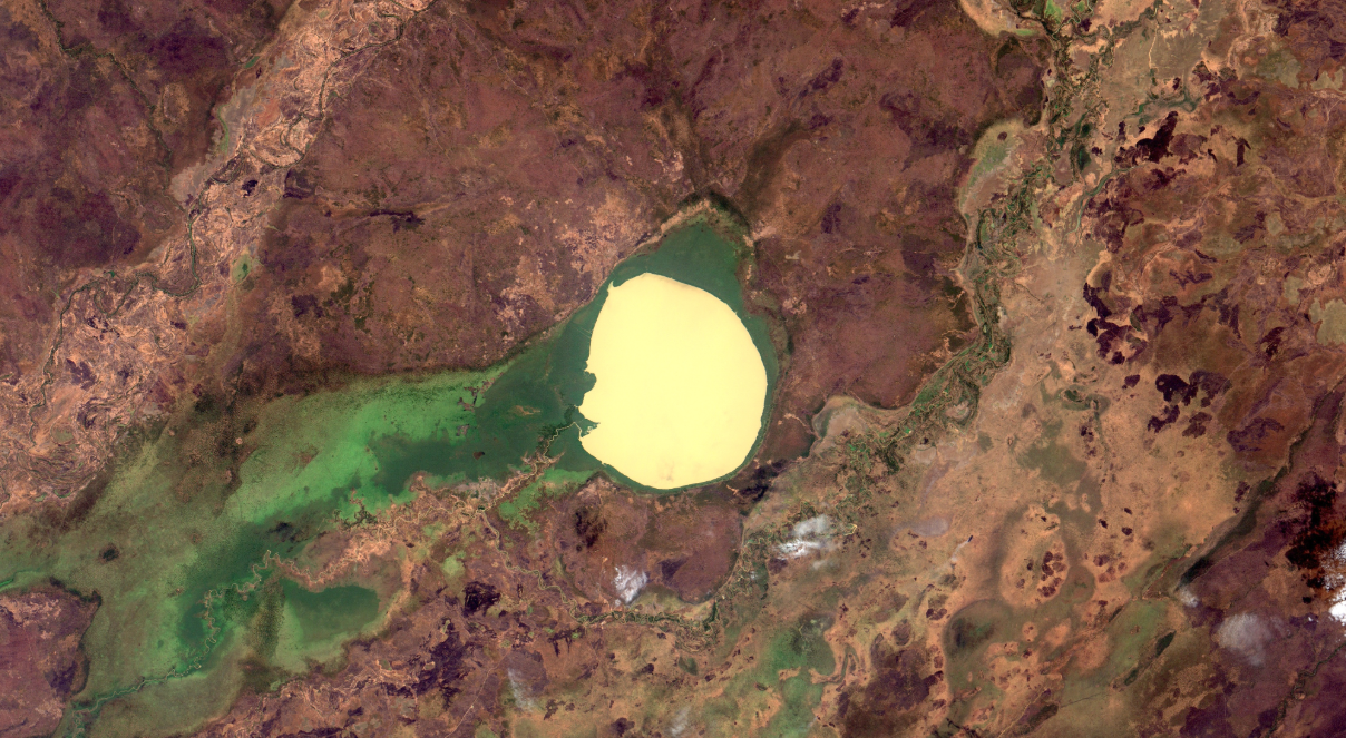 Yaklaşık 12 kilometre çapındaki bu göl, Sahel bölgesinde yer alıyor ve çevresindeki nehir sistemiyle birlikte mevsimsel değişimlere bağlı olarak şekilleniyor. Sunglint etkisi sayesinde bu su yolları ve akışlar da uzaydan daha net görülebiliyor.