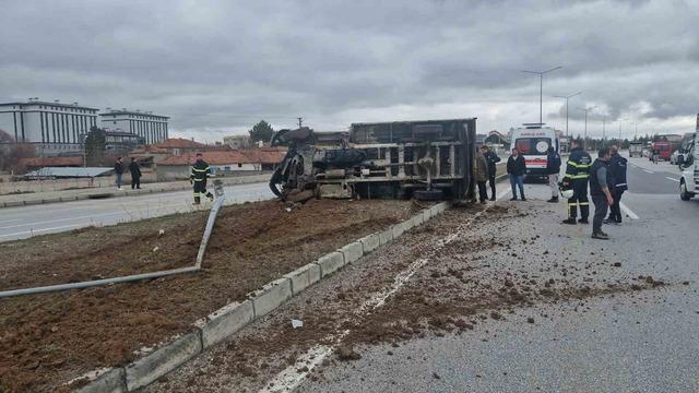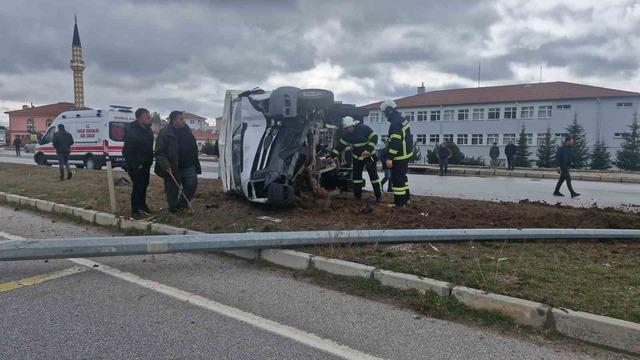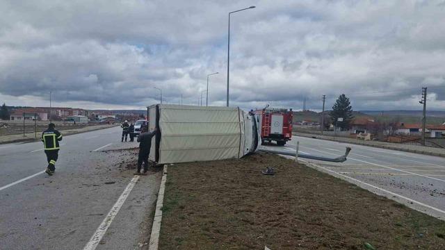 Çorum’da devrilen kamyonetteki 3 kişi küçük sıyrıklarla kurtuldu