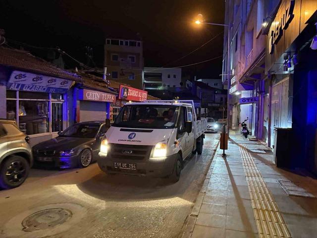 Çorum Belediyesi tarafından kaldırım ve yol işgaline karşı gece saatlerinde denetim gerçekleştirildi.